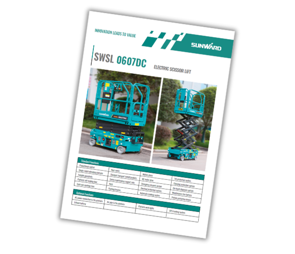 The Sunward SWSL 0607DC features a zero-emissions electric drive, making it durable and cost-effective. Despite its very compact size, it is very strong. As all the Sunward scissor lifts models, it offers excellent performance, comfortable and safe operation, and it is very nearly maintenance-free. Its size makes it very easy to transport to every jobsite, and, thanks to its zero emissions, it can be used both indoors and outdoor.